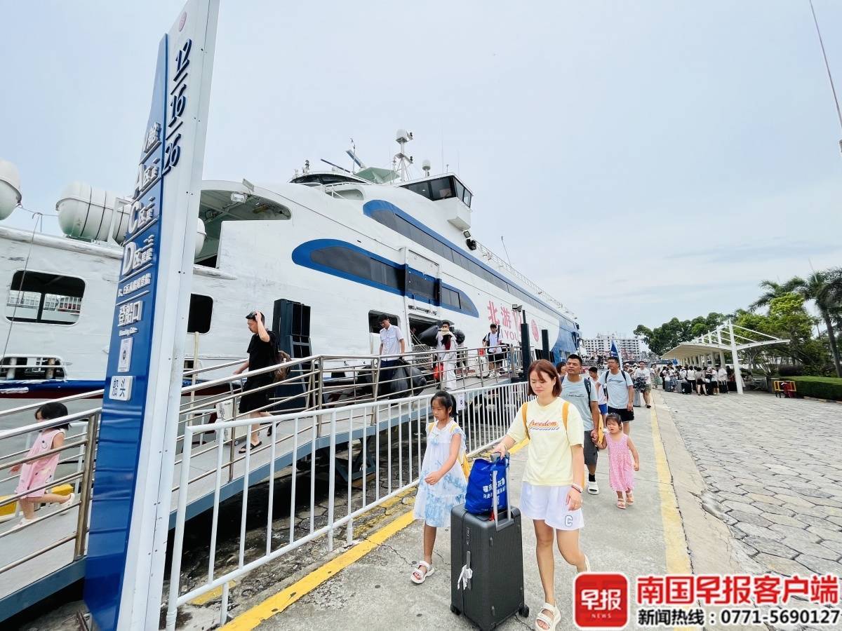 由于正值旅游旺季,为保障游客安全,19日至20日,北海至涠洲岛航线运营方先后开行29趟返程航班,共疏送2.79万人次下岛。20日下午,南国早报全媒体记者在北海国际客运港码头看到,多艘客轮靠泊码头后,游客在工作人员的引导下有序下船。