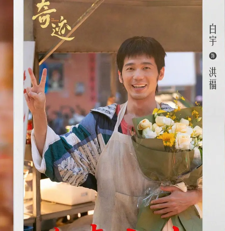 白宇长了一张很适合正剧的脸,他在杀青照中围着围裙抱着花束开心比耶,看起来不像完成了拍摄工作的演员,而是刚刚忙完收工的小店老板。