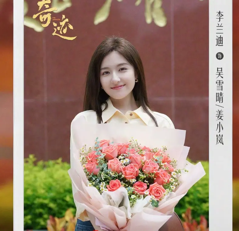 李兰迪在《奇迹》杀青照中的状态和其他人看起来完全不在一个图层,整个人又白又美,一眼看去简直在发光。