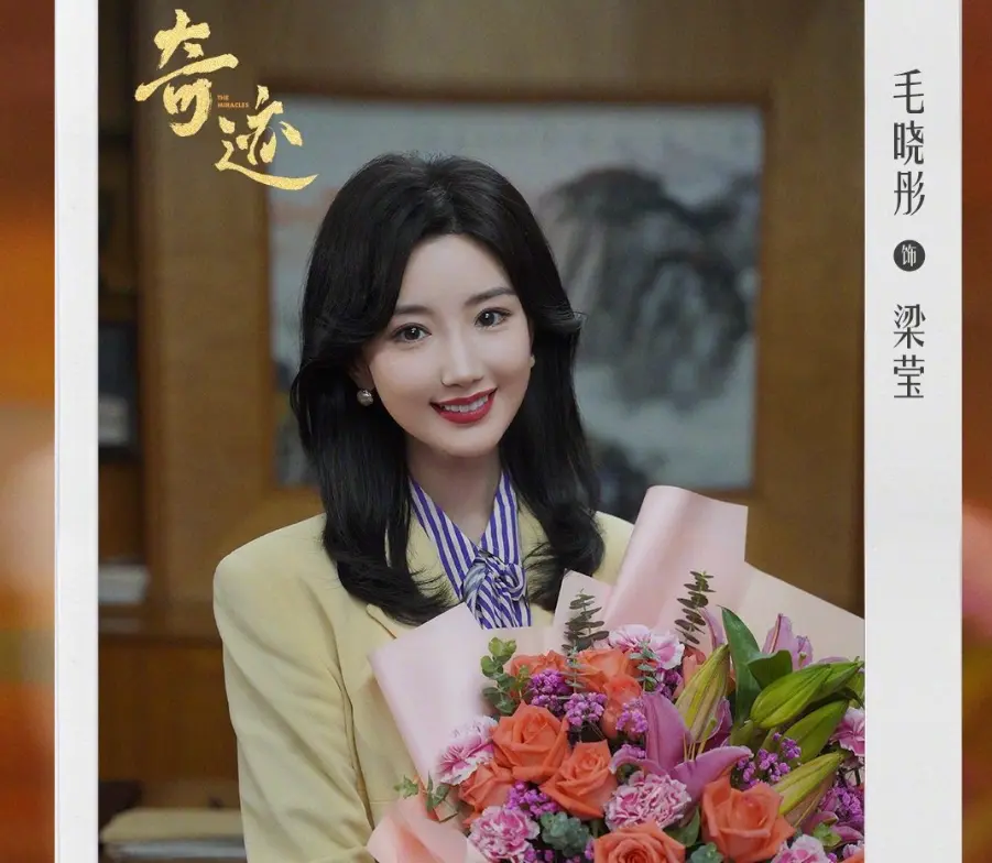 毛晓彤的长相偏甜美风,但她在《奇迹》中的造型就很有职场感。条纹衬衫和西装的经典搭配,再加上披肩卷发,完全就是风风火火女老板的气场。
