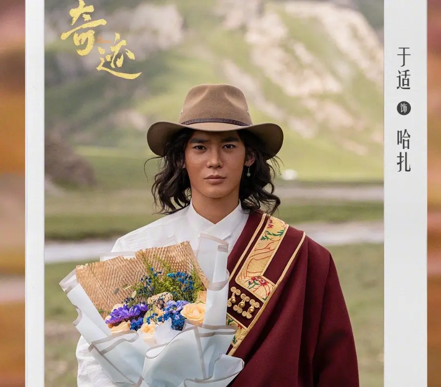 于适是少数民族出身的明星,他在《奇迹》中的造型就很复古,虽然脸上涂了黑粉,但戴着帽子很有质感。